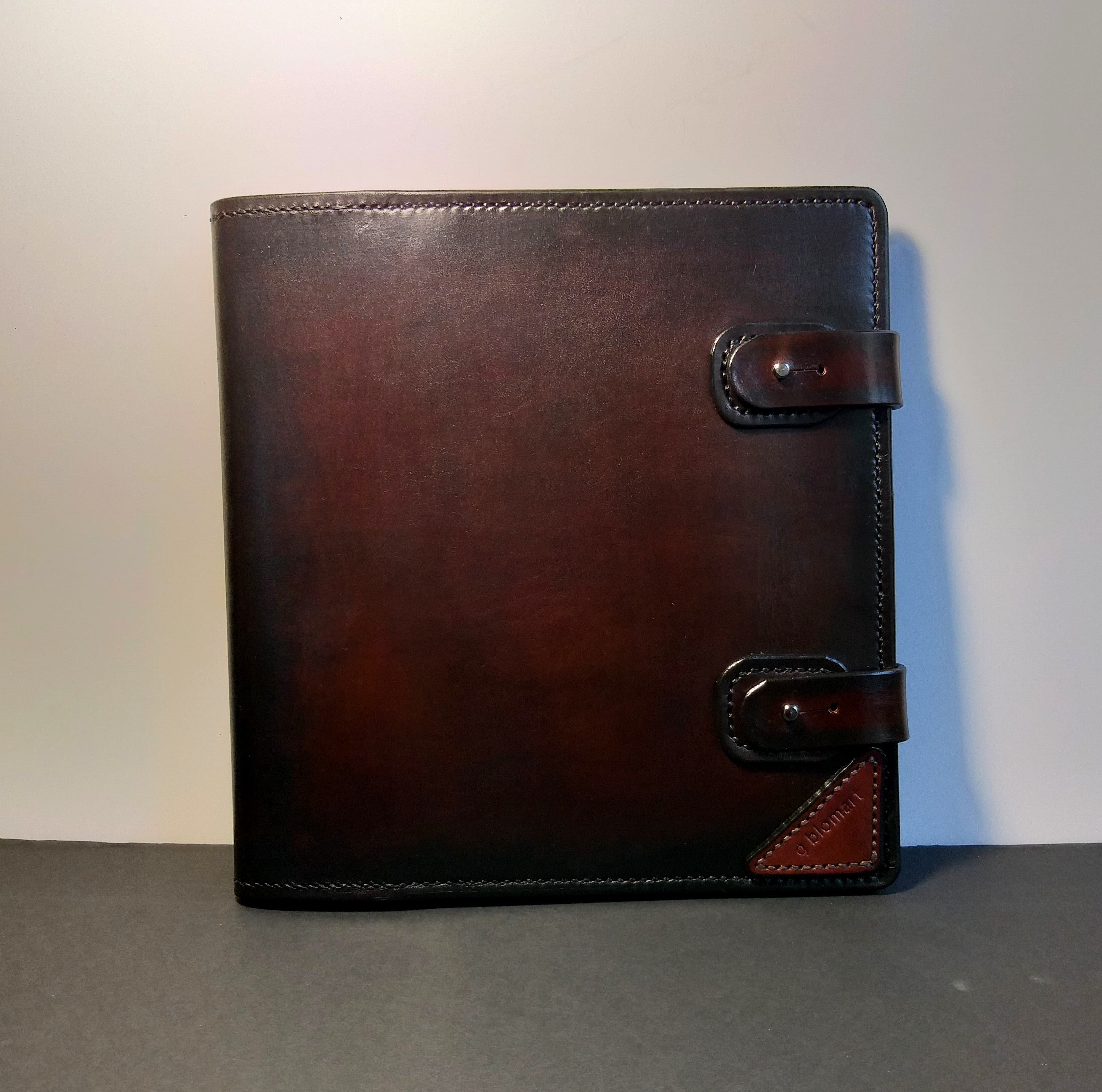 100% handmade. The leather is hand cut, hand dyed, hand punched and hand stitched.