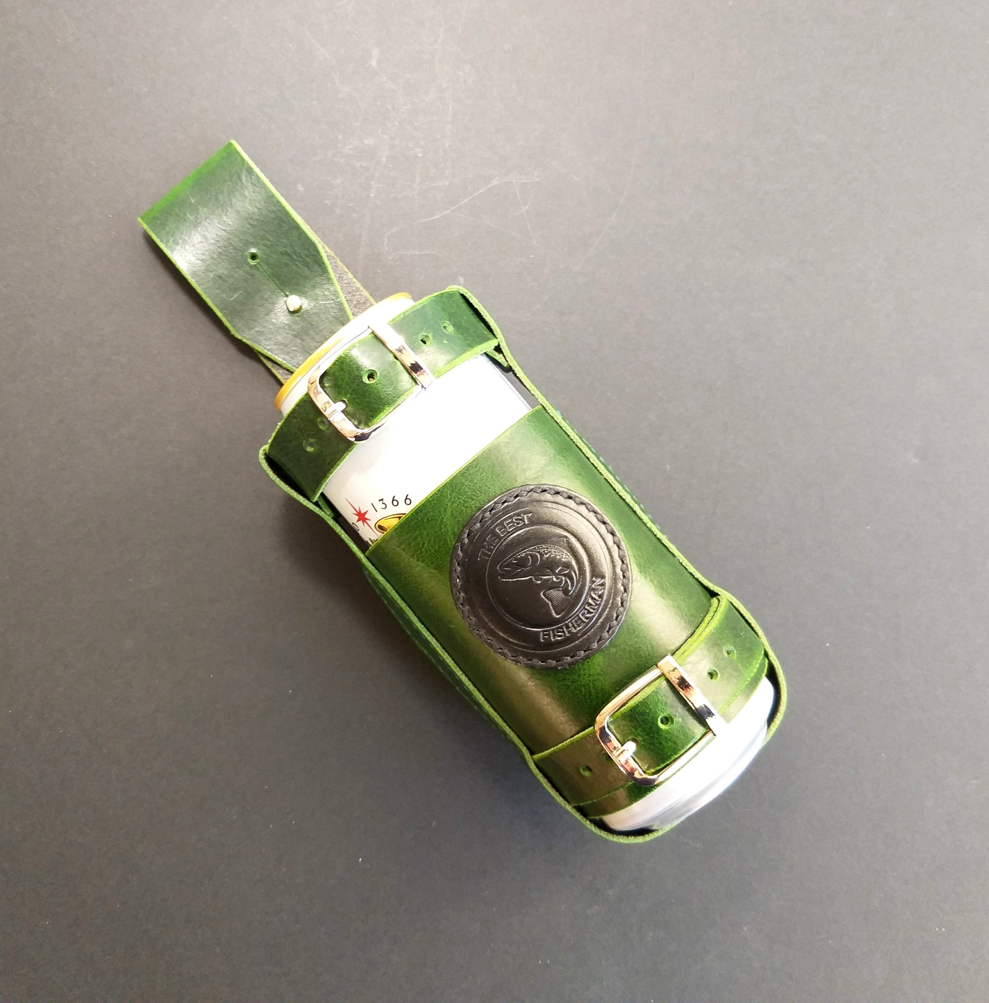 This designer custom leather bottle holder is handcrafted from high quality leather, making it extremely durable.