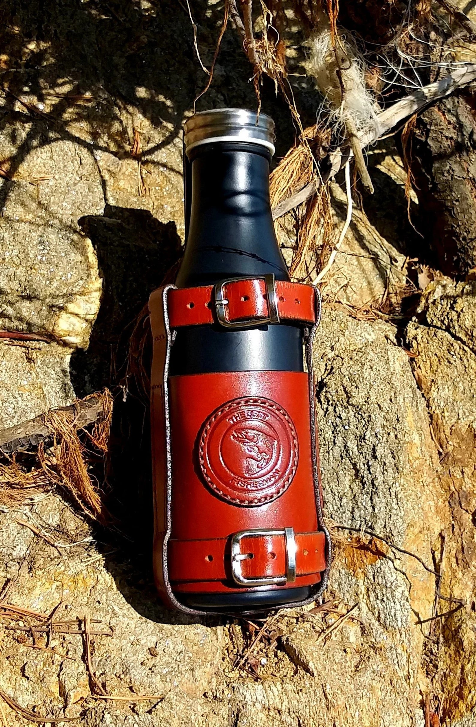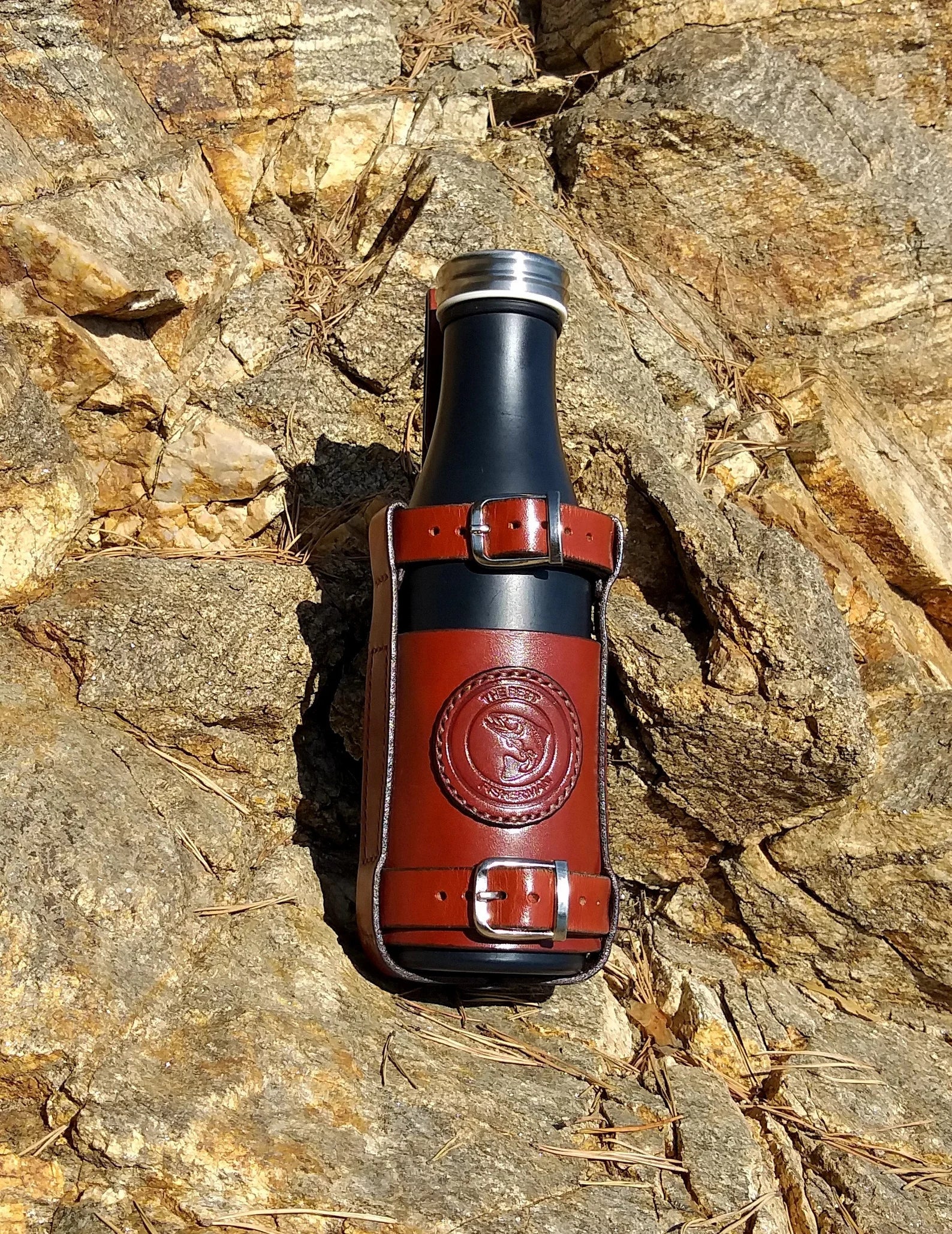 • Leather Bottle Belt Holster - "The Best Fisherman V2"
