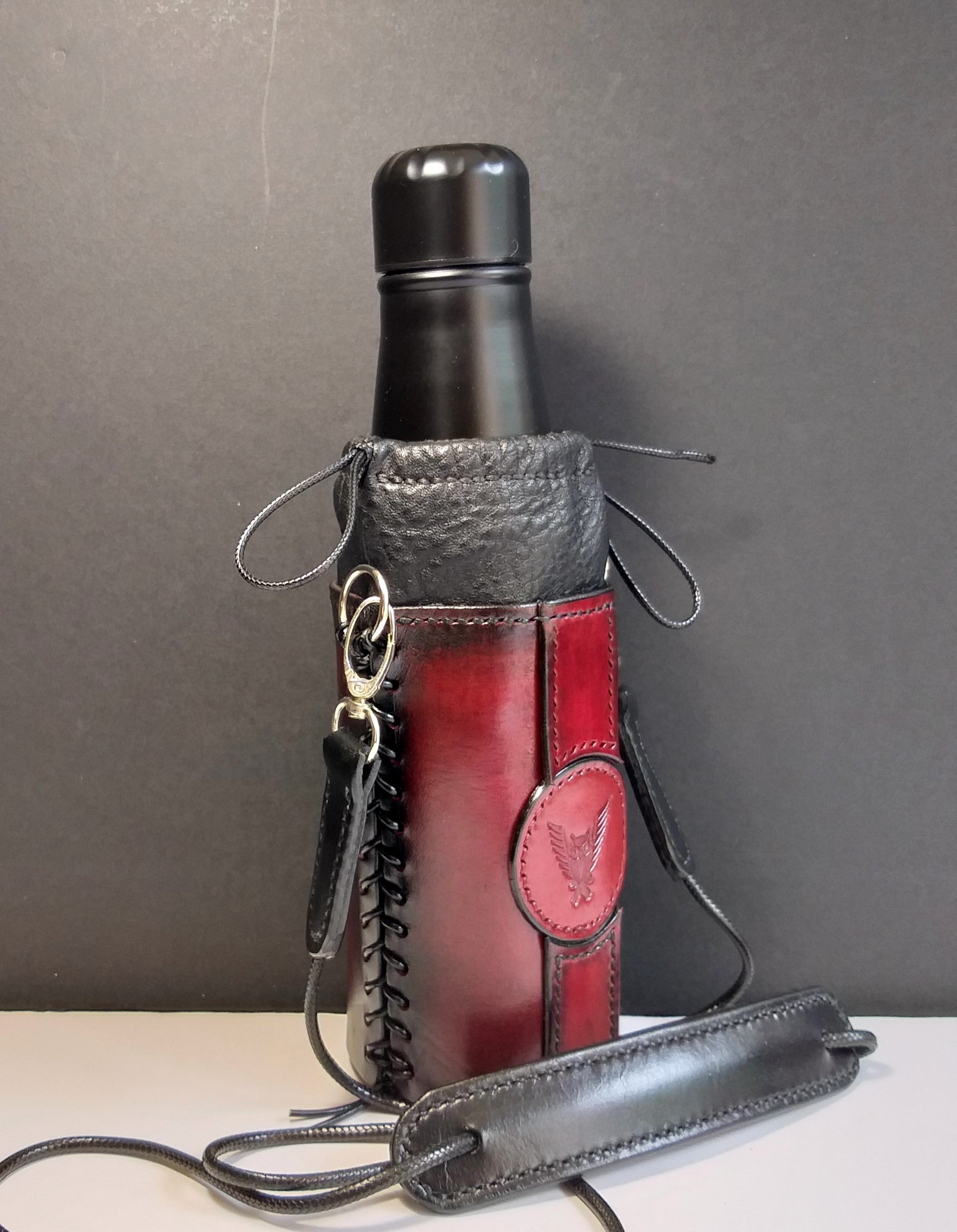 This designer custom leather bottle holder is handcrafted from high quality leather, making it extremely durable.